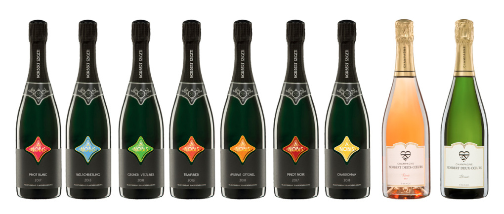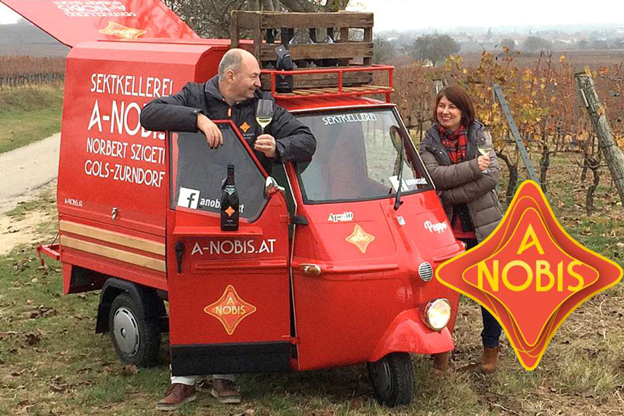 Kultur und Weindas beschauliche MagazinA-NOBIS Ein Name steht für klare Herkunft „Sekt ohne Druck ist wie eine burgenländische Krautsuppe ohne Kraut“, gibt sich Norbert Szigeti launig und zugleich bodenständig. Zwei Orte im Seewinkel sind auch die Heimat dieses Schaumweins, der nun unter dem Namen A-NOBIS auf dem Markt reüssiert. Immerhin wurde der Pinot Blanc brut 2017 auf Anhieb Landessieger des Burgenlandes. Bevor wir aber seinen Korken knallen lassen und ihn verkosten, ist ein Blick auf das Etikett angebracht. In einem Karo mit weich geschwungenen Rändern prangen die Buchstaben A NOBIS und verraten dem Eingeweihten, dass sich in diesem Code das Bekenntnis zu A wie Österreich und die Namen NOrbert und BIrgit Szigeti verbergen. Der elegante Aufkleber am Flaschenhals wurde zum Wappenträger, auf dem Heraldiker auf den ersten Blick die Symbole für die Ortschaften Gols mit der Zinnenkrone und Zurndorf mit den gekreuzten Fischen erkennen. Vater Josef Szigeti stammte aus Zurndorf, seine Söhne aus Gols. Norbert Szigeti zieht nun wieder nach Zurndorf zurück, wo am 1. Februar 2019 der Spatenstich für die neue Kellerei von A-NOBIS erfolgte. Eingebracht werden dort 34 Jahre Erfahrung im Versekten großer österreichischer Weine. Für das Traubenmaterial, das an Ort und Stelle zu Grundwein ausgebaut wird, wurden Partnerschaften auf fairer Basis geschaffen, das heißt, so versichert Norbert Szigeti, dass den Weinbauern ungeachtet eines „Marktpreises“ entsprechende Traubenpreise gezahlt werden. Die große Konstante ist die traditionelle Flaschengärung, die im Hause A-NOBIS als einzig schlüssige Methode zur Sektherstellung angesehen wird. Wenn nun der Pinot Blanc brut 2017 munter im Glas perlt, in die Nase noch den Sortenduft steigen lässt und im Mund mit weichem Mousseux begeistert, dann bleiben für den Verkoster kaum mehr Wünsche offen. Das einzige weitere Begehr ist durchaus legitim, denn ihm liegt die berufsmäßige Neugier zugrunde, auch die anderen Sekte dieser Linie zu probieren. Den Anfang macht der „Brut“ aus Welschriesling, der es immerhin auf 91 Falstaff-Punkte gebracht hat. Der „Dry“, ebenfalls Welschriesling, rangiert nur einen Punkt dahinter, wird aber vom „Welschriesling brut 2016“ um zwei Punkte übertroffen. Bereits auf dem Markt ist auch „Grüner Veltliner brut 2018“, den eine spezielle Eleganz auszeichnet. Als klassisch elegant trocken lässt sich „Österreichs bester Sekt“ (© Falstaff) „Traminer brut 2015“ mit seinen feinen, floralen Rosenaromen beschreiben, der ähnlich wie der „Muskat Ottonel brut 2018“ sein ausgeprägtes Aroma unter frischer Fruchtigkeit entwickelt. Aus Krems (NÖ) kommen die Pinot Noir-Trauben des „Cuvée 1217 Blanc de Noirs extra brut 2014“.