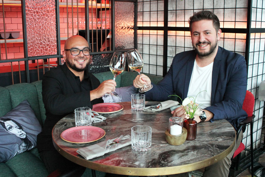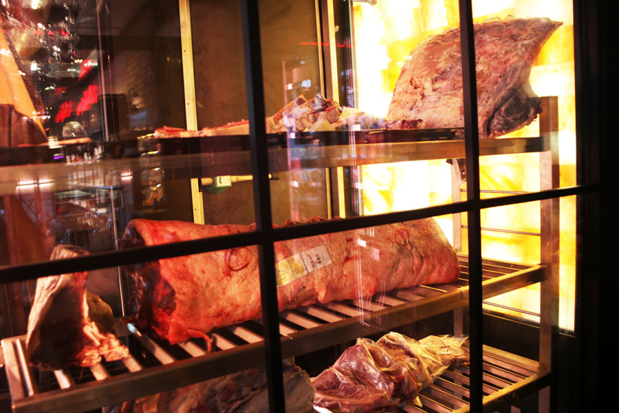 Über dem Donaukanal an der Oberen Donaustraße wird das Speisen auch zum optischen Genuss. Dabei geht es nicht nur um das vollendet am Tisch aufgeschnittene Porterhouse, dessen medium Rosa das Wasser im Mund zusammenlaufen lässt. Sehenswertes bietet bereits beim Eintreten das stimmige Ambiente der gastlichen Raumflucht und direkt vis-à-vis der Tür lässt es Chefkoch Steve mit seinen Leuten ordentlich dampfen und brutzeln. Er hat gar nichts dagegen, wenn ihnen jemand auf die Finger schaut. Die Fleischstücke werden unmittelbar daneben aus dem verglasten Dry Ager, dem Herz des Restaurants, geholt und exakt so lange auf den flammenden Rost gelegt, bis sie die vom Gast gewünschte Konsistenz haben. „Wir arbeiten sehr extrovertiert“, erklärt Betriebsleiter Amir Maurer das Konzept, „das hier beginnt und an der Suhsi Bar keineswegs endet.“ Richtig, denn auch der Wein lädt in einer Reihe von Schränken zum Gustieren ein. Was schließlich ins Glas kommt, ein großer Roter oder ein in einem der Kühler auf „Betriebstemperatur“ gehaltener Weißer, entscheidet Sommelier Franz Xaver, der aus den Weinen namhafter Winzer das jeweils Passende empfiehlt.