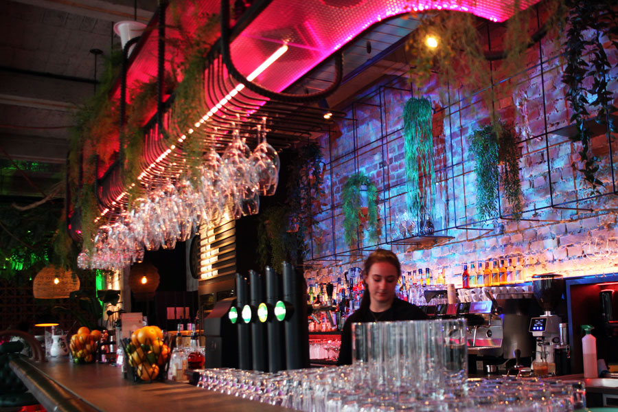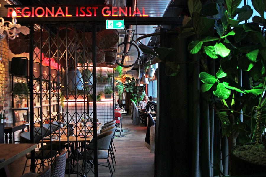 Kultur und Weindas beschauliche MagazinBeleuchtung und Dekor sind im gesamten Restaurant stimmungsvoll AUGENWEIDE mit Steak, Pasta, Sushi und mehr