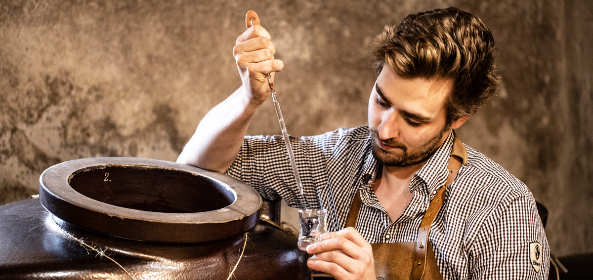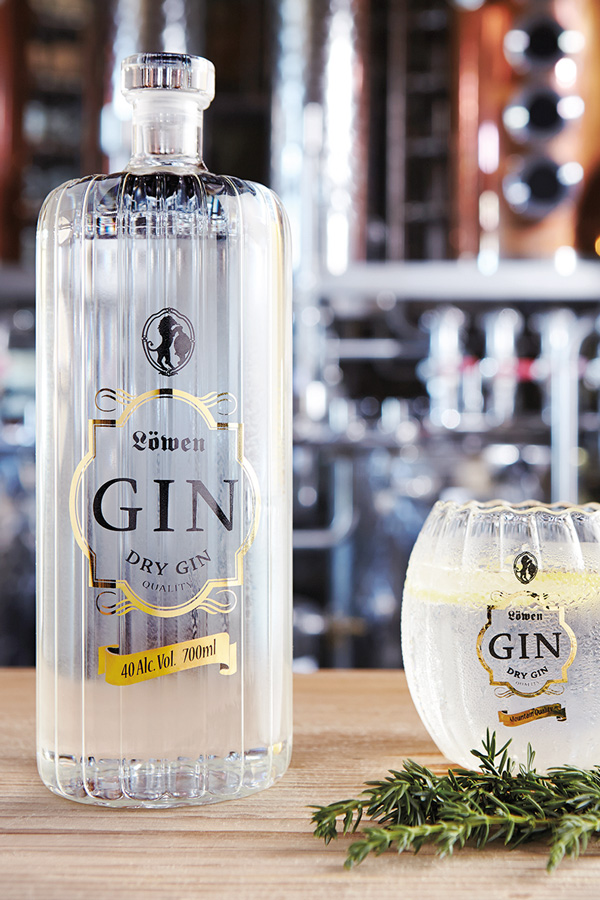 „Wir sehen es als unser Aufgabe an, das Wesentliche in Kräutern, Wurzeln und Früchten zu verdichten und zu konzentrieren“, lautet die Philosophie der Brennerei in Au-Rehmen im hinteren Bregenzerwald, um vielversprechend anzufügen, dass „wir hier den Gin unseres Lebens brennen.“ Tatsächlich ist Gin eines der Leitprodukte. Hergestellt wird er inmitten der Idylle der Bergwelt und hat genau von diesen Almwiesen seinen unnachahmlichen Geschmack. Als Hauptbotanicals werden Wacholder, Holunderbeeren, Alpenkräuter und Bergwurzeln angeführt. Damit aus dem Löwen Dry Gin, so heißt es dort, ein echter Wood Gin wird, braucht es vor allem Zeit und ein gutes Gespür für das richtige Timing. Er lagert mehrere Monate im Eichenfass, das ihm weichen Geschmack und die einzigartige goldgelbe Farbe verleiht. Dabei handelt es sich bereits um eine Spezialität, die im Löwen Gin AURUM PURISSIMUM noch eine Steigerung findet. Diese Edition ist streng limitiert. Es gibt nicht mehr als neun, von einem Künstler kreierte, mundgeblasene Edelflaschen, begleitet von einer aufwendigen Goldminiatur.