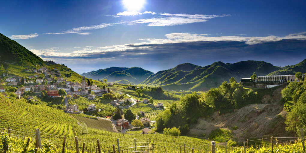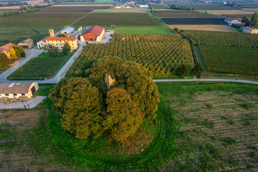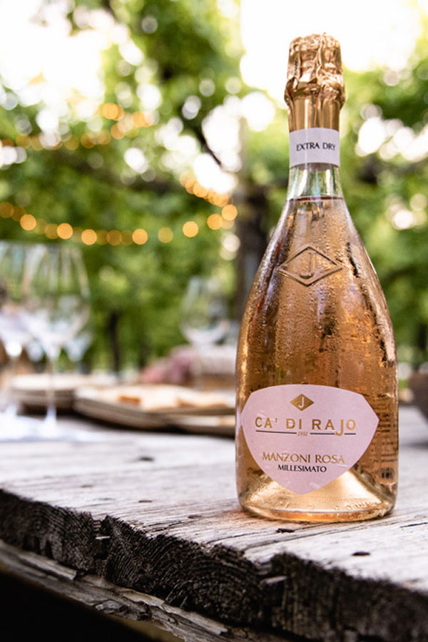 An den pittoresken Rauten auf einer Fläche von 15 Hektar gedeihen internationale Sorten wie Chardonnay, Pinot Bianco, Sauvignon und Merlot, daneben regionale Sorten wie Verduzzo, die seltene autochthone Manzoni Rosa für den Spumante Extra Dry Millesimato oder die Glera als die einzig zugelassene Traube des hier beheimateten Prosecco. Einige dieser perlenden Weine gibt es auch unter der Bezeichnung Epsilon, einer eleganten, modernen Edition. Besondere Zuneigung erfährt die recht eigenwillige rote Traube Raboso bei Ca` Di Rajo, wo man das Erzählen von Geschichten liebt. Es gibt den Raboso DOC Piave „Sangue del Diavolo“ und den Malanotte del Piave DOCG „Notti di Luna Piena“. Wie kommt das Blut des Teufels in die Vollmondnächte? Eine Sage berichtet, dass der Satan in solchen Nächten in die Gegend gekommen ist.