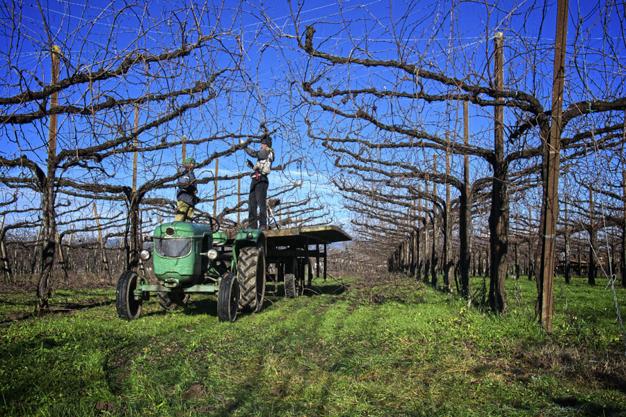 Entwickelt wurde diese erstaunliche Methode Ende des 19. Jahrhunderts von den Brüdern Bellussi in Tezze di Piave. Sie wurde zur charakteristischen Architektur des Weinanbaus am linken Ufer dieses Flusses und brachte Vorteile gegenüber der Stockkultur in einer Zeit, als Handarbeit noch selbstverständlich war. Denn anders als manuell können diese Weinstöcke nicht bearbeitet werden. Von einem Traktoranhänger aus werden alle Arbeitsschritte über Kopf durchgeführt, vom Schneiden bis zur Ernte. Mit dem Einsatz von Maschinen und den dafür geeigneten Erziehungsweisen verschwanden diese Anlagen großteils – bis sie von den Betreibern des Weingutes Ca` Di Rajo wieder entdeckt und als historisches Gut ihrer Region erkannt wurden. Die Brüder Simone, Fabio und Alessio Cecchetto, drei junge Männer mit großen Perspektiven, sind sich bewusst, damit die Identität und die Einzigartigkeit ihres Territoriums zu erhalten. Mit der Pflege dieses Erbes – teils sind es 70jährige Weinstöcke – unterstreichen sie ihre Philosophie, der zufolge eine Weinflasche mehr vermitteln sollte als ihren Inhalt. Sie sollte ebenso für ein Stück Geschichte stehen, wie sie von ihrem Weingut erlebbar gemacht und vor dem Aussterben gerettet wird.