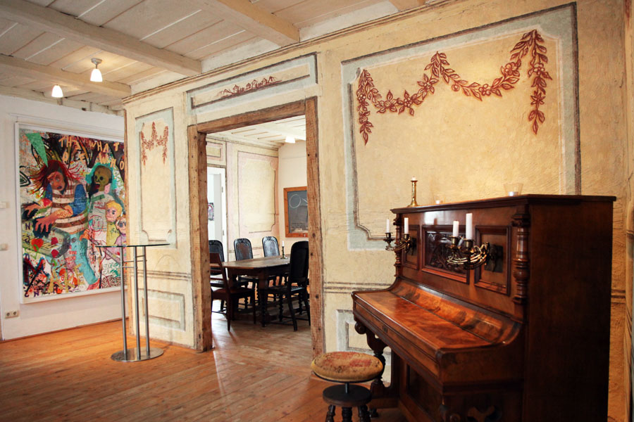 Die Räume waren im 18. Jahrhundert mit der damals beliebte Chinoiserie, also mit chinesischer Kunst nachempfundenen Malereien ausgestattet. Sie wurden wieder freigelegt und dienen nun als edler Rahmen für die gesammelte zeitgenössische Kunst. Vertreten sind auch Österreicher wie Arnulf Rainer, Walter Pichler, Günter Brus und Ludwig Christian Attersee. Sie schaffen ihrerseits wieder den kunstvollen Hintergrund für wahrhaft exklusive Feste. Der Veranstaltungskalender lädt zu „4 Gänge / 4 Weine / 4 Köche“ oder zum vom Küchenchef Sebastian Matzel kreierten Wild-Menü oder der weltweit ersten öffentlichen Aufführung von verschollen geglaubten Werken der Komponistin Amalie von Sachsen. Man ist aber auch außerhalb dieser Termine bei den „Drei Herren“ gern gesehen und genießt die herzliche Stimmung, die zwischen den dort Beschäftigten allgemein herrscht, verkostet einen lebendig frischen Traminer und dazu Köstlichkeiten aus der regionalen saisonalen Küche, bevor man in diesen aus Kunst und Wein geschaffenen Parcours genussvoll eintaucht.