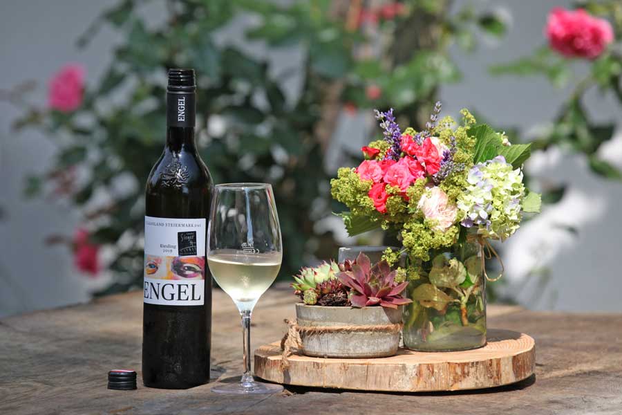 Infiziert am Wein hat sich Simon Engel bei einem Aufenthalt in Australien. Als der junge Mann wieder in seine Heimat nach Tieschen zurückgekehrt ist, wurde umgehend aus der elterlichen gemischten Landwirtschaft ein Weingut. Zu den 0,2 Hektar, auf denen Wein für den Hausgebrauch gekeltert wurde, kamen bald mehr als neun Hektar rund um den Königsberg und am Klöchberg in der Nachbarortschaft. Bis dahin war Simon Musikant gewesen, hatte Geige, Akkordeon und Schlagzeug gespielt und wendete nun sein Talent und das G´spür für feine Töne dem Weinmachen zu. Er selbst erklärt sich die Wandlung so: „Mir hat das gefallen, wie man mit dem Produkt Wein umgeht, die Wertschätzung und die Geschichte, die rundherum verpackt ist. Gläser mögen gleich ausschauen, aber in jedem Glas ist eine andere Geschichte je nach Sorte und Herkunft.“ Freilich gab es am Anfang Hilfe von Freunden wie dem Winzer Leo Gollmann, der ihn in seinem Keller die Trauben verarbeiten ließ. Dreinreden lassen hat sich Simon aber nur wenig. Die Theorie des Weinmachens eignete er sich in einem College in Krems an.