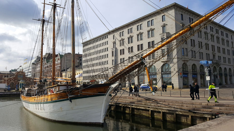 Wer den alten Markt am südlichen Hafen betritt, ist fasziniert; nicht nur vom Angebot an Köstlichkeiten, das Stände in etlichen Reihen anbieten, sondern mehr wohl noch vom pittoresken Ambiente, das sich über 100 Jahre unverändert erhalten hat. Hinter liebevoll verzierten Holzfassaden liegen unwiderstehlich präsentiert die Waren, angefangen vom Rentierfleisch, über regionale Früchte, allen voran frisch oder als Marmelade die wilde Heidelbeere und massenhaft Schwammerln aus den endlosen Wäldern, dazu heimische Getränke bis zu Fischen, sowohl vom baltischen Meer als auch aus den 180.000 Seen, die das Land mit ihren dunkelblauen Wasserflächen melancholisch überziehen. Die begehrteste Spezialität ist Lohikeitto. Stücke vom Lachs, Erdäpfel, Dill und Obers sind die Zutaten zur Lachssuppe, die mittags die Menschen in die kleine Markhalle zieht. So einfach wie es in dieser Üppigkeit aussehen mag, machen sich die Finnen ihr Essen jedoch nicht. Im Ministerium für Land- und Forstwirtschaft wird eifrig darüber gegrübelt, wie man für die Zukunft entsprechend vorsorgen kann. Betrachtet man die kurze Geschichte der Selbständigkeit, der sich diese Nation im Nordosten Europas erfreut, dann wird klar, warum man mit aller Kraft daran arbeitet, die Produktion von Hauptnahrungsmitteln im eigenen Land sicherzustellen. Mit zufriedenem Lächeln weist man darauf hin, dass es kaum Seuchen gibt. Die Bauernhöfe liegen einfach zu weit voneinander entfernt, um die Erreger weiterzutransportieren. Pestizide sind nicht erforderlich, da die Schädlinge in den tiefen Temperaturen des Winters ohnehin erfrieren, und warum der Hafer gerade im Norden besser als anderswo gedeiht, hat seinen Grund darin, dass er in der zwar kurzen, durch die Mitternachtssonne aber intensiv mit Licht bestrahlten Vegetationsperiode die besten Voraussetzungen für sein Wachstum findet. Ein Segelschiff vor Anker im südlichen Hafen Innovationen haben Tradition. 1945 erhielt Artturi Ilmari Virtanen den Nobelpreis für seine Erkenntnisse zur Konservierung von Tiernahrung. Heute sind es Startups, die in die Zukunft blicken. So forscht VTT Technical Research Centre of Finland Ltd. unter anderem an der Herstellung von Nahrungsmitteln aus pflanzlichen Rohstoffen, mit denen es möglich ist, vollwertigen Fleischersatz zu erzeugen. Unter der Marke Onego bio will man Hühnerfarmen einsparen, indem mit Mikroorganismen und Bioreaktoren das beim Backen unentbehrliche Bindemittel, eben das Eiweiß, erzeugt wird. Gearbeitet wird mit höchsten Standards, aber nicht nur im Labor. Wer in Märkten, Lokalen oder in anderen Lebensmittelläden beschäftigt ist, hat extra eine Schulung zu absolvieren und den Hygiene Pass zu erwerben.