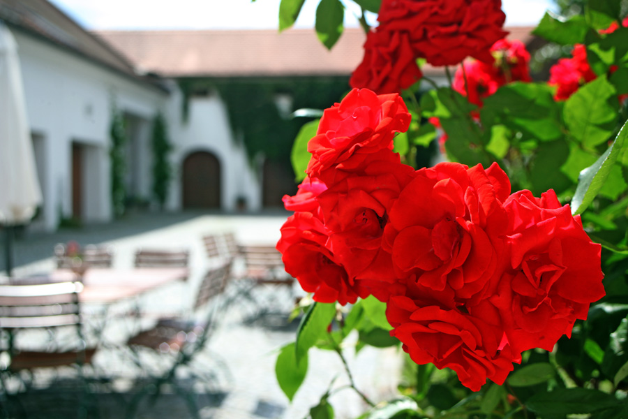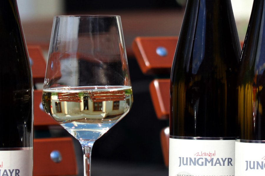 Sie ruhen in einer Kellerröhre und werden, so weit es noch möglich ist, auch verwendet, vor allem für den Rotwein, der mit Zweigelt und Cabernet Sauvignon vertreten ist. Dick mit Kellerlurch überzogene Flaschen lassen die vielen Generationen erahnen, die neben der (längst aufgelassenen) Landwirtschaft mit Vieh und Feld in dieser traulichen Tiefe ihren Wein gemacht haben. Tradition ist groß geschrieben im Hause Jungmayr, aber ohne auf das Neue zu verzichten.