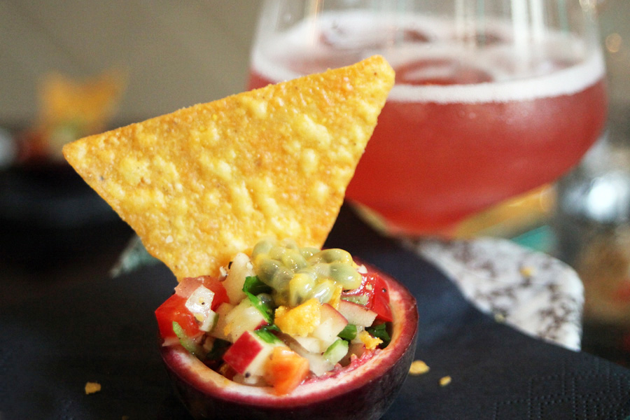 Für die Drinks hat er einen Bartender, der alle die Tricks kennt, um aus Spirituosen, Softdrinks und Früchten Gaumenkitzler zu mixen, die zu den Speisen passen, die im Junn, so nennt sich das Lokal in der Seilerstätte 14, dazu kredenzt werden. In der Küche werkt Master Li, der auf vierzig Jahre Kochkunst zurückblicken kann. Als Opener hat er gebackenen Tofu zubereitet, mit süß-scharfer Sauce, gefolgt von einer fruchtigen Maracuja Salsa, die mit Tacos aus deren Schale herausgelöffelt wird.
