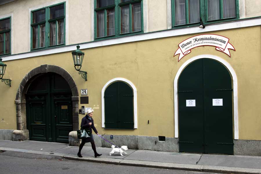 Das Wiener Kriminalmuseum (vereinigt mit dem Museum der Landespolizeidirektion Wien) findet sich in der Leopoldstadt, dem zweiten Wiener Gemeindebezirk, in der Großen Sperlgasse 24. Das Ambiente dieses alten Hauses, dem einstigen „Seifensiederhaus“, könnte nicht passender für dieses Thema sein. Das Gemäuer ist mehrere Hundert Jahre alt und man steigt vom Erdgeschoss im wahrsten Sinne des Wortes hinab in die Abgründe des Verbrechens.