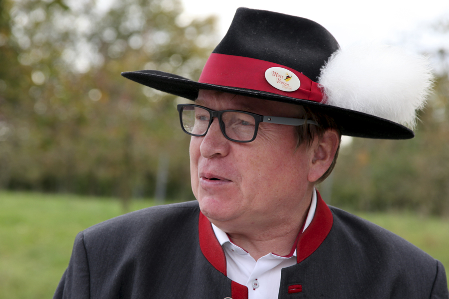 In launigen Worten erklärt er bei dieser Gelegenheit den nicht selten Most-Unkundigen Geschichte und Eigenart dieser Köstlichkeit. Man weiß anschließend, was „Brous“ (die bereits im Herbst angesetzte Blütenknospe) oder „Preh“ (ein Wort für Stolz) und „Exibatur (Pflug) bedeuten. Die Ausdrücke finden sich auch auf den von ihm angebotenen „Gourmetmosten“, Cuvées aus mindestens drei autochthonen Birnensorten, die von leicht spritzig über elegant bis kräftig reichen.