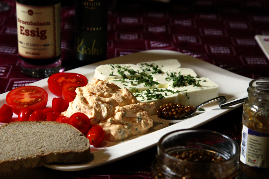 Käseplatte als erster Gang des Mostdegustationsmenüs im Mostwirtshaus Distelberger