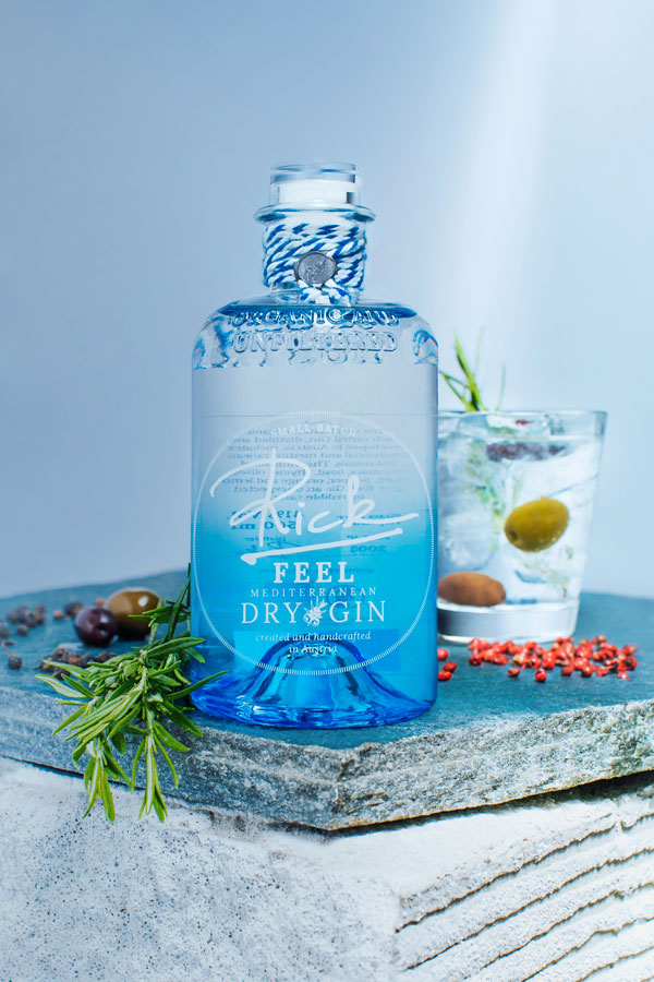 „Wacholder ist die Basis und immer über 50 Prozent.“ Das gilt auch für den dritten im Bunde, den Rick Gin FEEL, der mit entsteinten und gemaischten Oliven mazeriert wird. Für wahres mediterranes Feeling sorgen Basilikum und Rosmarin. Übrigens handelt es sich dabei um den einzigen Bio-Gin dieser Art in Österreich. Es ist einfach die Philosophie von Patrick Marchl, mit seinem Gin die heimische Qualität zu betonen und diesen der übrigen Welt in einer in jeder Beziehung reinen Form anzubieten.