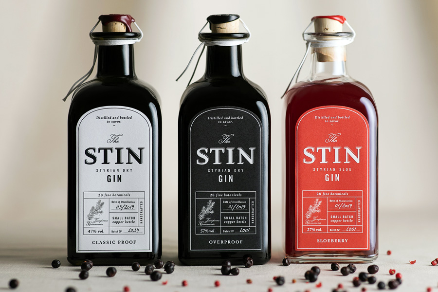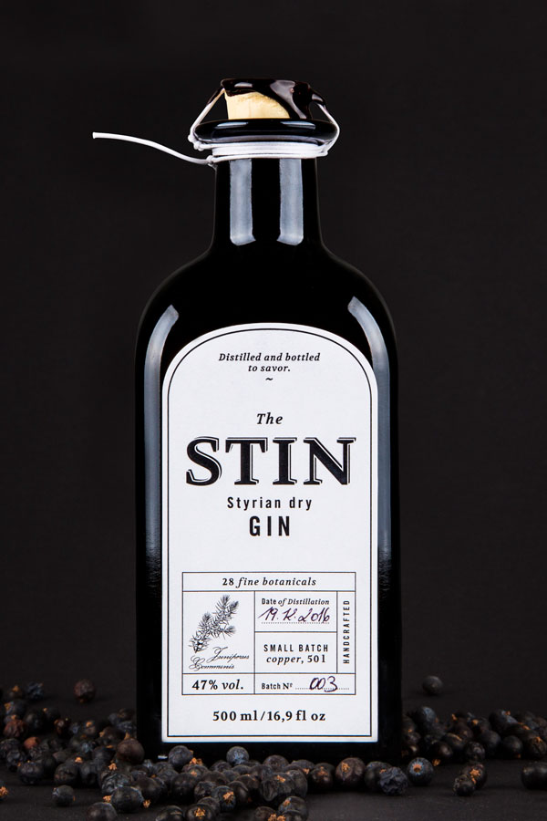Zwischen den Etiketten der bekannten Flaschen dürfte in nächster Zeit ein Schriftzug auftauchen, der auch einer hartgesottenen Barfly ein Rätsel aufgibt. STIN, vier Buchstaben wie ein Programm. Die Lösung findet sich rasch, wenn man das Wort in der Mitte teilt und ST und IN auf STyrian dry gIN reimt. Damit ist aber erst ein Teil des Geheimnisses verraten. STIN kommt aus der Südsteiermark, einer Schatzkammer prall gefüllt mit kulinarischen Genüssen wie dem oben erwähnten Wein, dem unvergleichlichen Kernöl und nunmehr auch mit Gin.