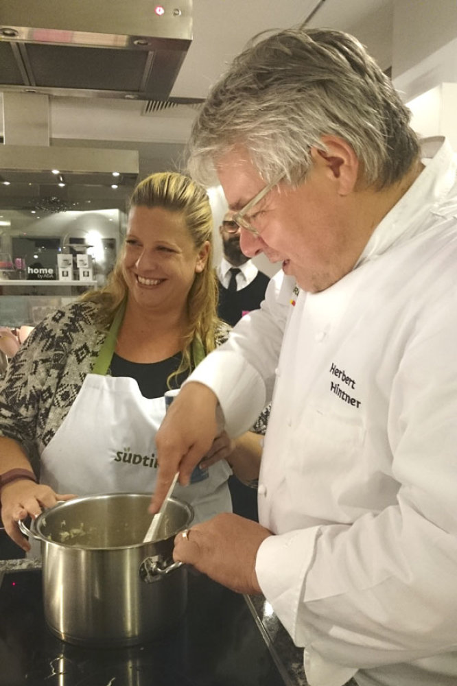 Es darf auch Traditionelles mit Modernem gemischt werden. Sternekoch Herbert Hintner vom Restaurant „Zur Rose“ in Eppan empfiehlt als Auftakt ebenfalls die Gerstesuppe. Südtiroler Schlutzkrapfen folgen als Klassiker, gemeinsam serviert mit Roggennudeln auf Spinat und Topfen. Selchkarre mit Kraut und Senf stehen einer Praline vom Kobis mit Sauerkraut und Selchfleisch gegenüber. Beschlossen wird das Mahl mit Kastanienkrapfen und deren Neuinterpreation als Millefoglie von Krapfenblättern mit Kastanien.