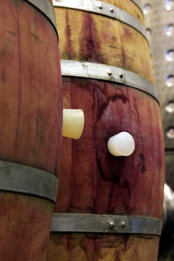 In diesen (nicht neuen) Eichenfässern wird der Rotwein 15 Monate ausgebaut