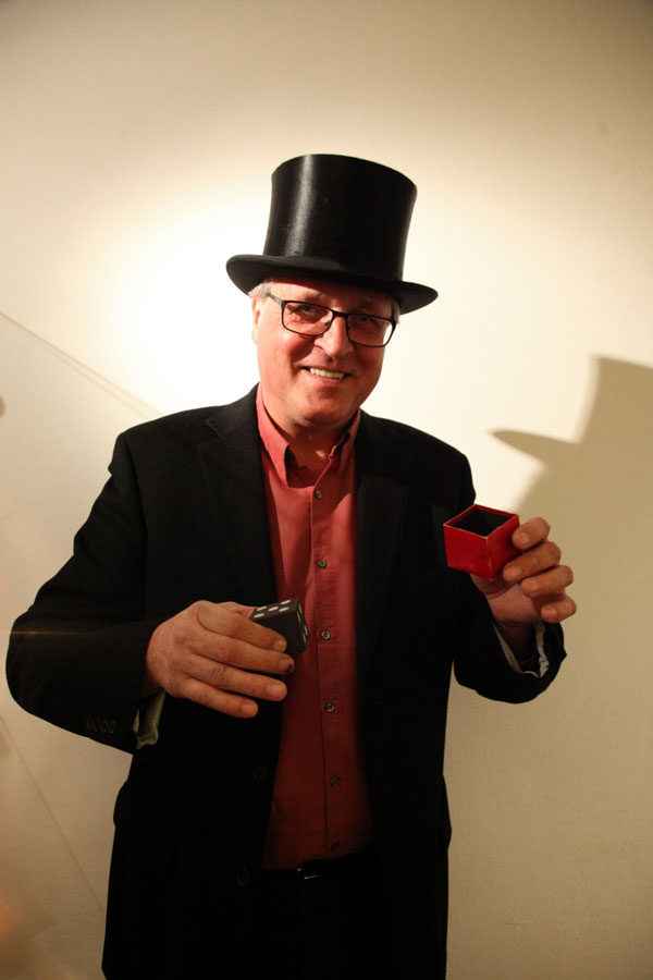 Mit diesem Andenken eröffnet er die Führung durch das Reich der Zauberei, die ihn schon als 15jährigen im erlauchten Magier-Zirkel des „Zauberkistl Zauberkunstvereins“ Auftritte verschafft hat. Andere Interessen haben ihn später der aktiven Zauberei entfremdet, bis vor etwa 20 Jahren ein Buch des bekannten deutschen TV-Zauberers Wittus Witt in seine Hände fiel. Beschrieben waren dort Zauberkästen ab ihrem ersten Auftauchen Ende des 19. Jahrhunderts und gleichzeitig wurde die Geschichte der darin enthaltenen Kunst erzählt.