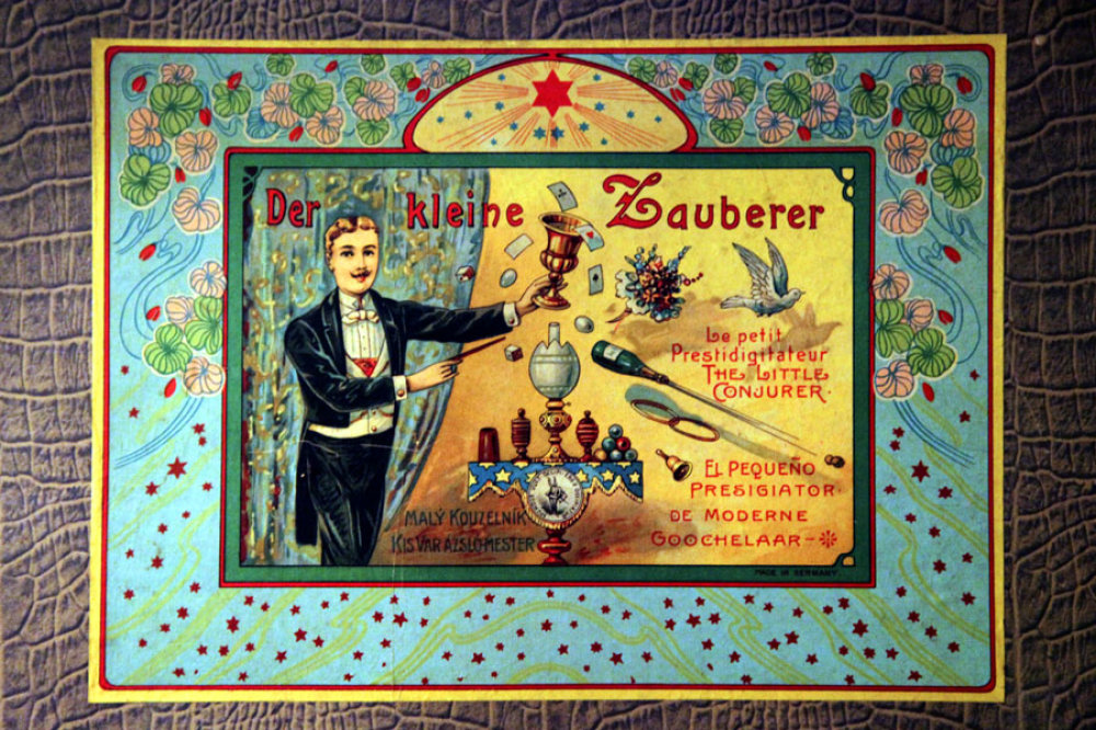 Zauberkästen gibt es in jeder erdenklichen Form und Ausführung, immer wieder tauchen auf den Deckeln große Namen auf, wie Siegfried & Roy, Alfred Gilbert, Houdini, Hanky Panky oder Mark Setteducati. Ältere Exemplare stammen aus der Spielzeugmetropole Nürnberg. Vater Caspar und Sohn Carl Baudenbacher sind nur zwei Namen aus einer Reihe bekannter Hersteller. Wien ist selbstverständlich auch vertreten, mit dem Ersten Österreichischen Zauberkasten von A. Pichlers Witwe & Sohn in Margareten.